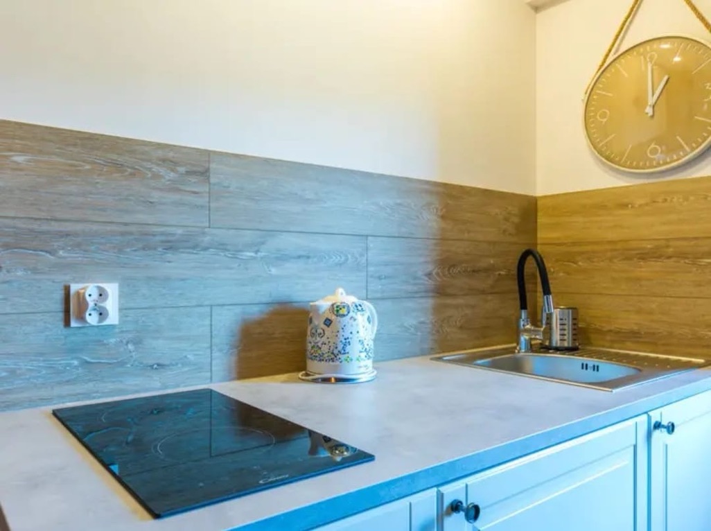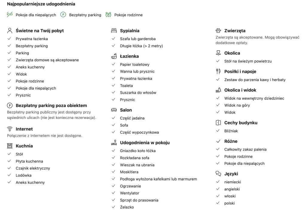 Oferta apartamentu obejmuje dwie sypialnie, salon z rozkładaną kanapą, aneks kuchenny z pełnym wyposażeniem, w tym lodówką, a także łazienkę z prysznicem i suszarką do włosów.